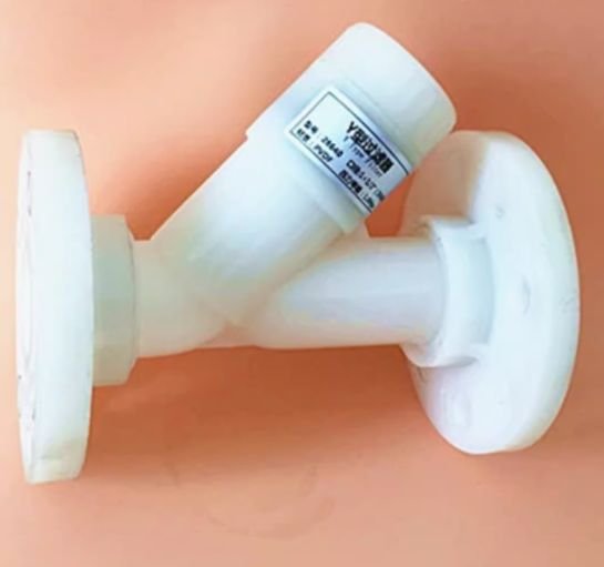 A polyvinylidene fluoride (PVDF) Y-type strainer is a corrosion-resistant filtering component used in industrial piping systems to remove solid particles from liquids, gases, or steam. The Y-shaped body houses a perforated or mesh screen to collect debris, protecting downstream equipment like pumps and valves. PVDF is a high-performance thermoplastic known for its excellent chemical and thermal resistance, making it suitable for aggressive media and high-purity applications.