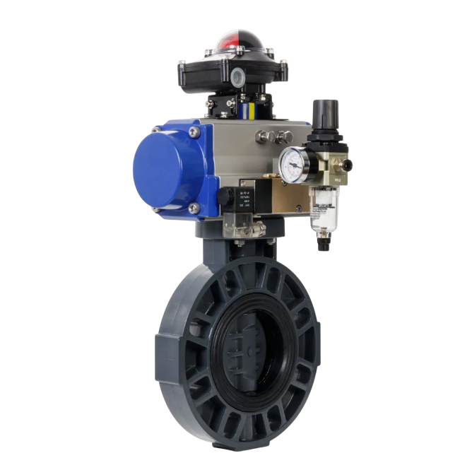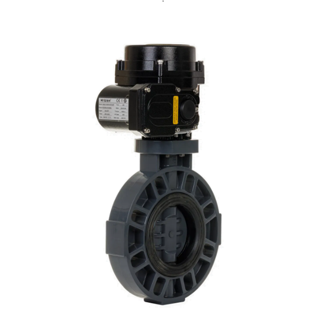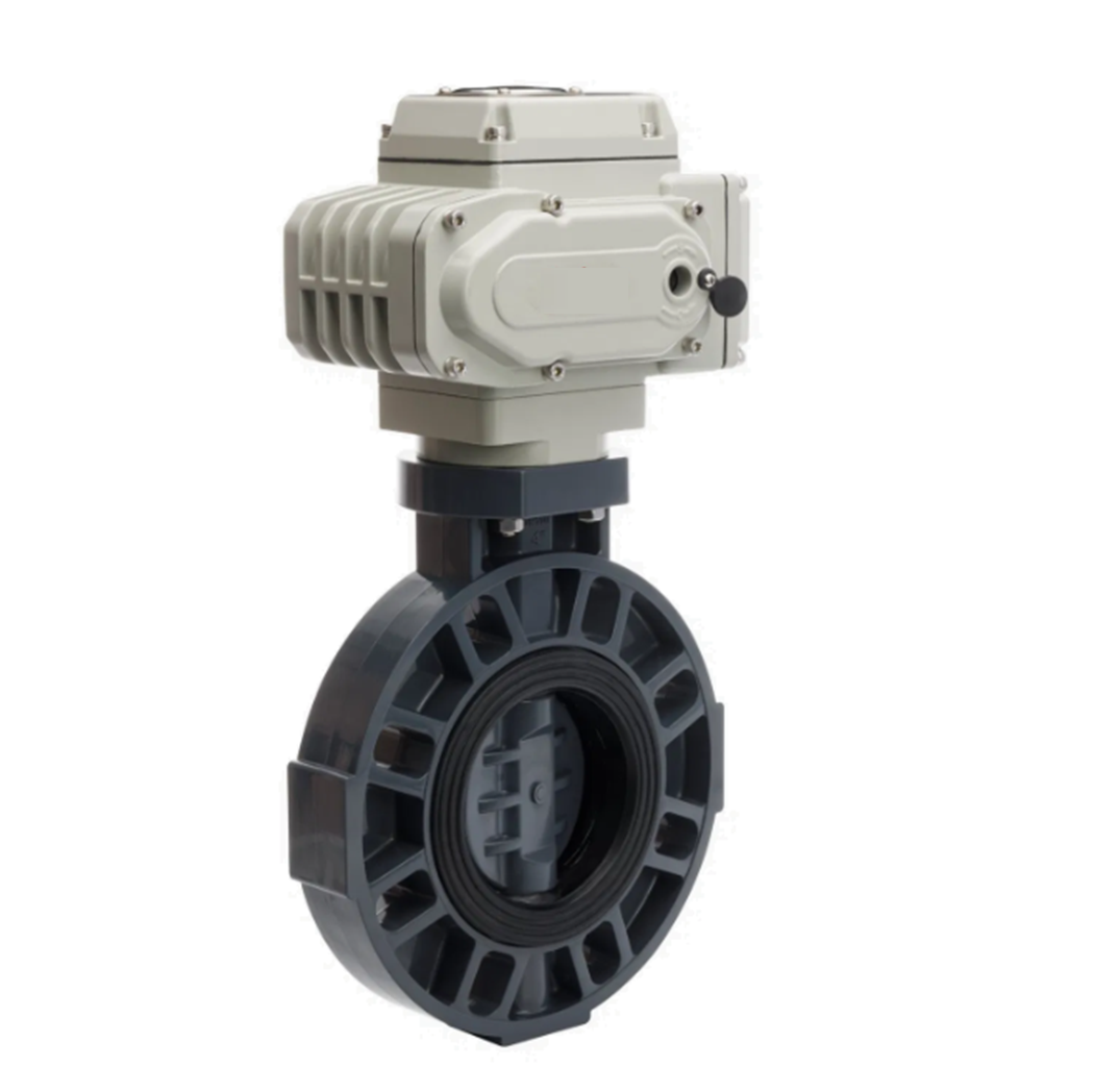 EVA UPVC Butterfly Valve ISO 5211 is a high-performance flow control device designed for corrosive environments and automation-ready systems. It features a wafer-style body made from Unplasticized Polyvinyl Chloride (UPVC), known for its chemical resistance and lightweight properties. The valve integrates an ISO 5211 mounting pad, allowing direct installation of electric or pneumatic actuators without additional brackets or couplings.